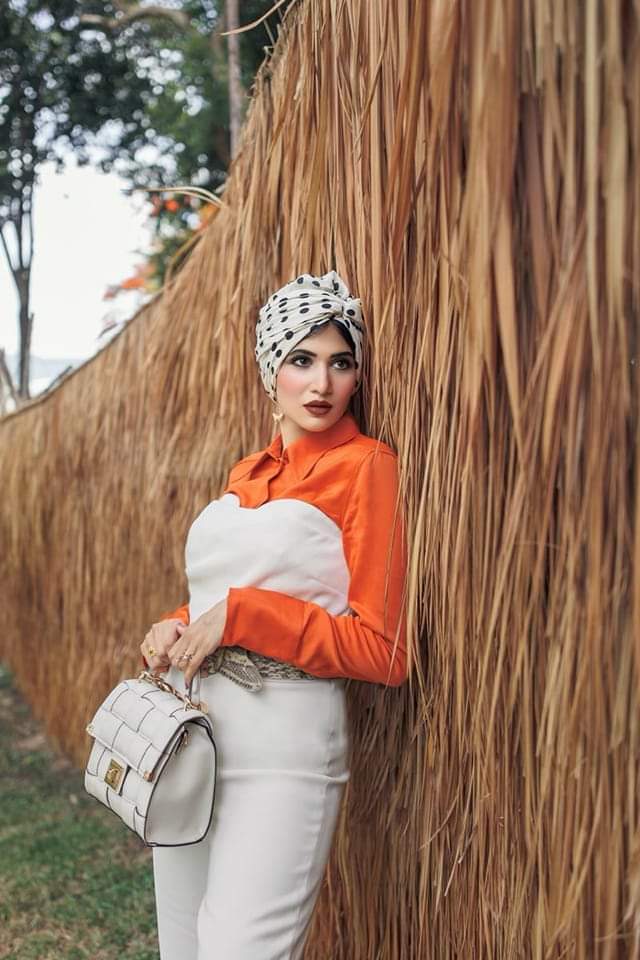 وأضحت الفاشون بلوجر آية حكم انه لمواكبة أحدث صيحات الموضة يمكن ارتداء بدلة أنيقة التصميم مصممة من قماش ناعم باللون البرتقالي مع تنسيق عليها كرديجان طويل فضفاض، مصمم من قماش ساتان باللون الأخضر، مطرز بخيوط الحرير من الأكمام على الأمام بشكل جذاب، فيما انتلعت صندلاً ذا كعب عال باللون الذهبي.