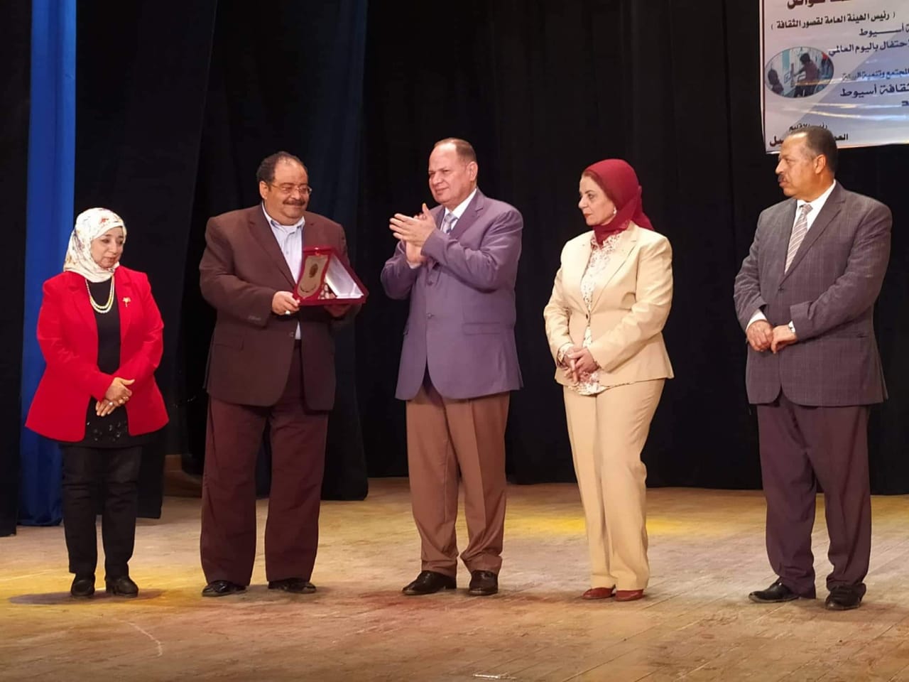 كما اهدي فرع ثقافة أسيوط درع المؤتمر لكلا من اللواء عصام سعد ابراهيم محافظ أسيوط و الدكتورة مها كامل غانم رئيس المؤتمر ونائب رئيس الجامعة لشئون التعليم والطلاب والدكتورة فاطمة الخياط وكيل وزارة التضامن الاجتماعي بأسيوط والأستاذة سهير الحادي عضو مجلس النواب والاستاذ محمد حمدي الدسوقي عضو مجلس النواب والاستاذ مجدي عبد الرحمن محمود مدير مكتب ذوي الإعاقة بمديرية الشباب والرياضة
