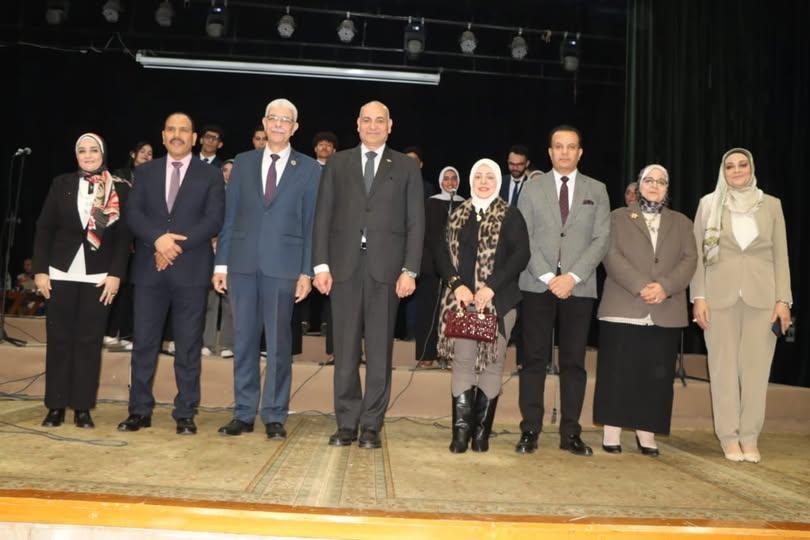 وقدّم طلاب كورال جامعة المنوفية، بقيادة وتدريب المايسترو الدكتور عبد الحميد عامر والدكتورة رانيا حامد، فقرات فنية متنوعة شملت أغاني وطنية وتراثية جسدت روح الانتماء وحب الوطن، إلى جانب مختارات من ألحان الموسيقار المصري العالمي عمر خيرت. وشارك في الأداء بالغناء الفردي كل من الطالب عبد العزيز سليم، والطالبة حسناء علاء، والطالبة أسماء حمادة، وسط تفاعل وإعجاب كبيرين من الحضور.