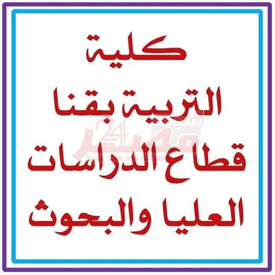 أعلنت كلية التربية بقنا قسم الدراسات العليا عن موافقة السيد الاستاذ الدكتور عباس منصور رئيس الجامعة على اعادة فتح باب سداد المصروفات الخاصة بالدبلوم العام بكلية التربية الذين لم يتمكنوا من السداد اعتبارا من يوم الاثنين الموافق 8 / 10/ 2018 وحتى يوم الخميس الموافق 11 / 10 / 2018 . صرح بذلك الأستاذ الدكتور محمود خضاري نائب رئيس الجامعة لشئون الدراسات العليا والبحوث وأضاف أن هذا القرار يصب في مصلحة الطلاب وحرصاعلى التحاقهم بالدراسات العليا.