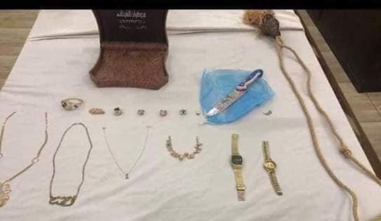 ج : اخفيت السكين وحبل الستارة والمشغولات الذهبية، بمنطقة الجزيرة الوسطى بطريق "كفرالشيخ - المحلة