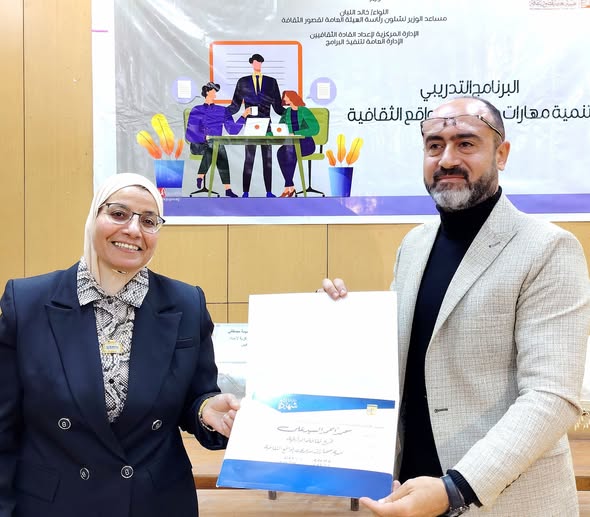 حيث تفضلت الأستاذه أميمة في كلمتها الختامية بالتأكيد على أهمية توفير بيئة ثقافية واعية جاذبة للرواد بمختلف المواقع لتطوير منظومة العمل الثقافي ودعم المواهب وتحفيز الإبداع لبناء جيل قوي وواعِ وأن هذا البرنامج بمثابة ركيزه هامه لتعزيز آليات التطوير داخل المواقع الثقافية عاكساً في مرأته قيم الانتماء وصون الهوية الوطنية ، وكذلك دور الدولة الهادف للاستثمار في العنصر البشري الذي يعد رأس مال الوطن وأساس التنمية، ولن يتم ذلك إلا بدعم وتطويرالبنية التحتية الثقافية في كافة المواقع الثقافية بكافة المواقع الثقافية عبر البدء بتطوير القصور والبيوت والمكتبات بما يلائم متطلبات العصر ويضمن عدالة مجتمعية بين جميع الفئات وهو ما ارتكز علية هذا البرنامج من العمل على تطوير الكوادر البشرية في مجال العمل الثقافي ورفع كفاءة العاملين وتزويدهم بمهارات الإدارة الثقافية والتواصل المجتمعي والتعامل مع التكنولوجيا الحديثة في العرض والتوثيق والترويج، إلى جانب تعزيز التحول الرقمي في الموقع الثقافي من خلال رقمنة المحتوى الثقافي المصري وتوسيع منصاته الإلكترونية وتوظيف التقنيات الحديثة في الوصول إلى الجمهور عبر التفاعل المجتمعي وتشكيل الهوية الثقافية، وهو السبيل الأمثل لتطوير منظومة العمل الثقافي وتفعيل دور القوى الناعمة المصرية بصورة تتسم بالعصرية و التأثير الإيجابي .