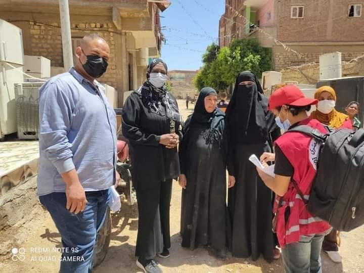 وبحضور ا/خالد احمد محامى مكتب شئون المرأة المجلس القومى بالقاهرة والأستاذ اسامه شندى منسق الحمله من الامانه العامه للمجلس القومى للمرأة ومشاركه كل وجمعيه الهلال الأحمر ومركز النيل حملة طرق الأبواب لتوعية السيدات بأهمية التسجيل للحصول على لقاح كورونا ،
