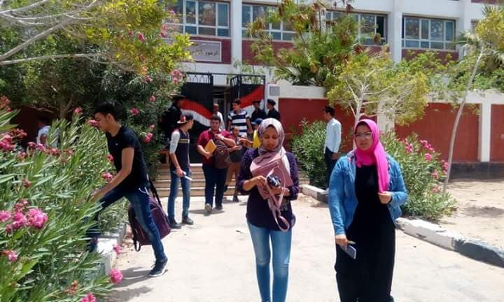 حيث خرج الطلاب من لجنة الزهور الثانوية بطور سيناء والبسمة تعلو وجوههم.