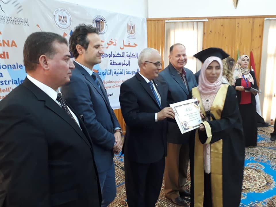 تضمن الحفل عرض فيديو توضيحي للورش ومراحل تدريب الطلاب بمجمع التعليم التكنولوجي، وتسليم شهادات التخرج للطلاب البالغ عددهم 47 طالباً بالدفعة الرابعة للمدرسة الثانوية الفنية في تخصصي الكهرباء والميكانيكا، وعدد 21 طالباً وطالبة بالدفعة الثانية من الكلية التكنولوجية المتوسطة، وتسليم المتميزين منهم شهادات التقدير.