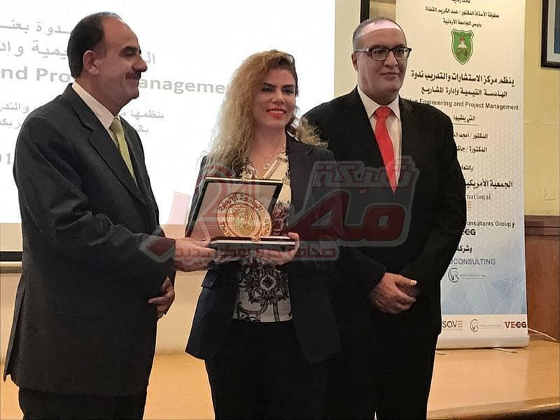 قام الأستاذ الدكتور عبد الكريم القضاة رئيس الجامعة الأردنية خلال المؤتمر بتسليم درع تقدير من الجامعة للدكتورة جاكلين عن نشاطها في المنطقة وخاصة الأردن .