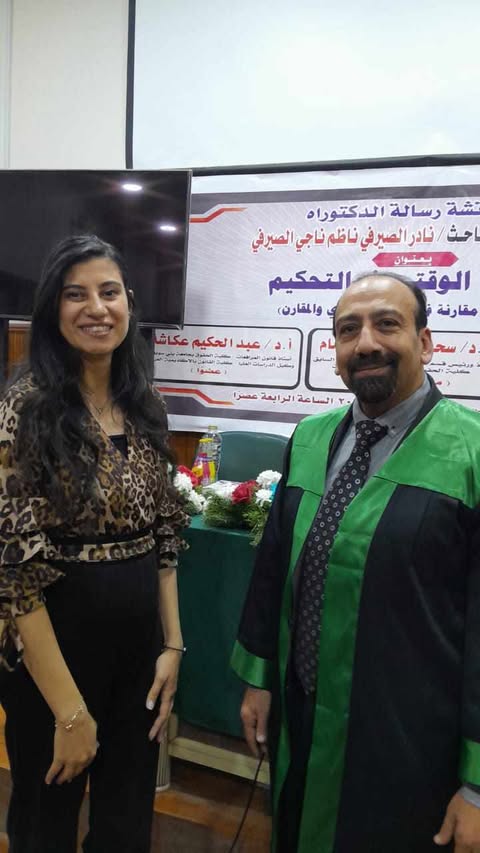 يتقدم الدكتور نادر الصيرفي، المحامي المتخصص وأشهر خبراء قضايا الأحوال الشخصية للمسيحيين في مصر والشرق الأوسط، بخالص التهاني للأستاذة/ مريم عطا سعد هاتور، مديرة مكتبة القانوني، المحامية بالاستئناف العالي ومجلس الدولة وذلك بمناسبة حصولها على درجة الماجستير في القانون الخاص من كلية الحقوق – جامعة عين شمس، عن رسالتها المتميزة بعنوان: