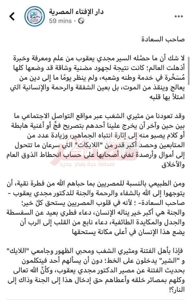 بيان من دار الافتاء المصرية بشان ما اثير من مثيرى...