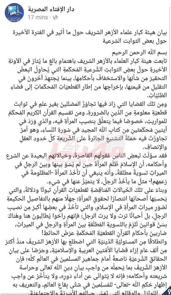 بيان هيئة كبار علماء الأزهر الشريف حول ما أثير في...