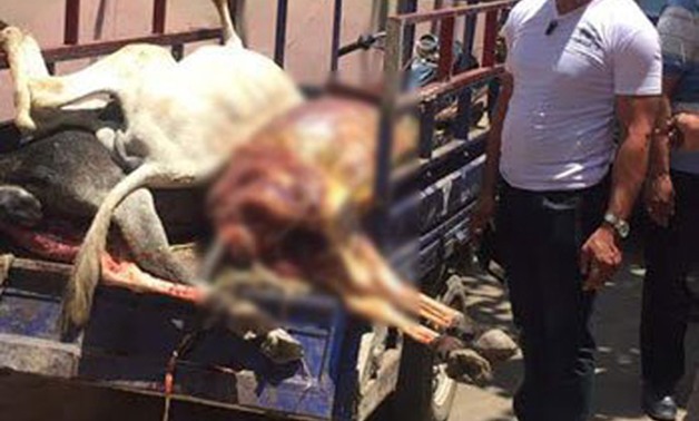 تمكنت مديرية الطب البيطري بمحافظة القليوبية بالتعاون مع مباحث التموين بالمحافظة من ضبط سيارة نقلعلى طريق دملو بمنطقة نائية، بمركز بنها محملة بـ 19 حمارا، منهم 8 حمير نافقة باسفكسيا الخنق باستخدام حبل.