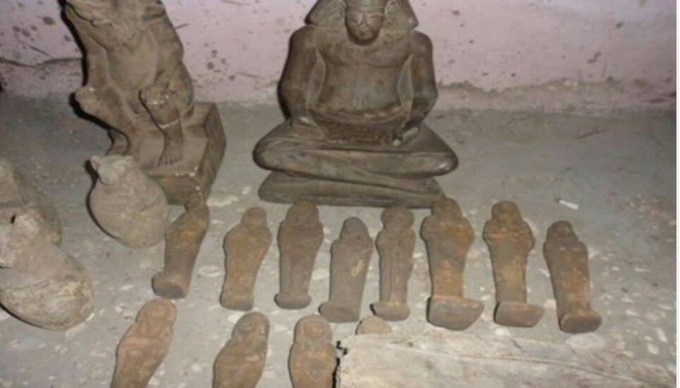 وتبين أن التماثيل عبارة عن "2 تمثال متوسط الحجم مصنوع من النحاس على شكل آدمي، 2 تمثال متوسط الحجم حجري، 2 تمثال متوسط الحجم على شكل حيوان، 3 ونايس متوسطة الحجم، وتمثال مذهب على شكل حيوان، وتمثال على شكل جعران، وإناء عليه رسومات ونقوش"، و40 قرصا مخدرا من عقار التامول.