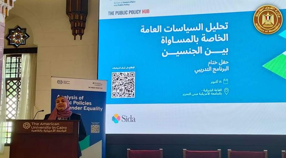 شاركت وحدة المساواة بين الجنسين والتمكين الاقتصادى للمرأة التابعة لوزارة القوى العاملة ، فى إحتفالية ختام برنامج " تحليل السياسات العامة للمساواة بين الجنسين" ، الذي يتم تنفيذه بالتعاون بين منظمة العمل الدولية ضمن مشروع العمل اللائق للمرأة فى مصر والأردن وفلسطين، وملتقى السياسات العامة بالجامعة الأمريكية، صدر عنه 5 أوراق سياسات أعدتها المنظمات النقابية العمالية.