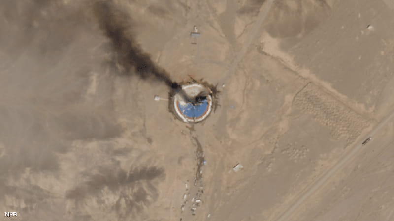 وتظهر الصور دخانا أسود يتصاعد، وجزءا من منصة إطلاق تشتعل فيها النيران على ما يبدو.