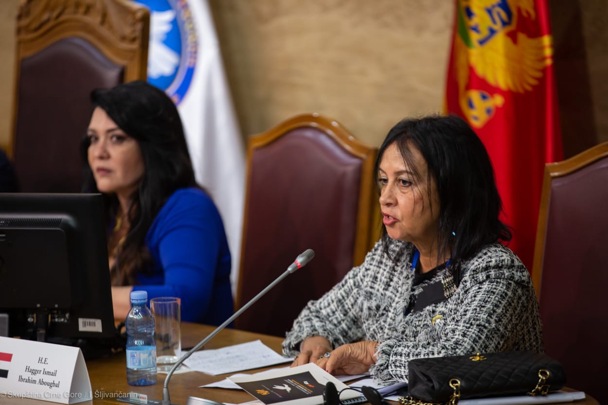 ومن جانبها أعربت الأستاذة الدكتورة/ هاجر أبوجبل في كلمتها امام البرلمان عن خالص الشكر لجميع الزملاء أعضاء الجمعية العمومية للمجلس العالمي للتسامح والسلام والزملاء في البرلمان الدولي علي هذه الثقة الغالية، وأشارت إلى أنها لن تدخر جهداً في سبيل نجاح أهداف وخطط المجلس، والوصول بها إلى جميع أرجاء المعمورة، لتكون ثقافة السلام والتسامح هي الهدف الأسمى الذي يؤدي إلى الرخاء العالمي المنشود من خلال تفعيل أليات المجلس المتمثلة في العمل الأكاديمي والعمل الإعلامي والمجتمعي لنشر قيم التسامح والسلام كما إستقبل رئيس وزراء جمهورية مونتينغرو الدكتورة ابو جبل خلال إحتفال الإستقبال بالمشاركين في جلسة البرلمان وأكد دعم بلاده لأعمال المجلس في نشر ثقافة المحبة والسلام .