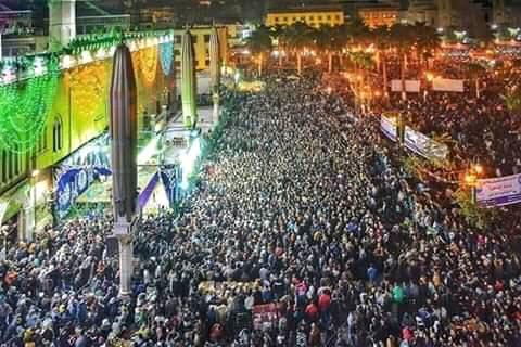 اختتم ملايين المصريين من احباب ال بيت النبي واتباع ومشايخ ومريدى الطرق الصوفية الاحتفال بمولد سبط النبي سيد شهداء الجنه الامام الحسين بن على بن ابى طالب حيث بدأ الشيخ محمود التهامى، نقيب المنشدين، وصلته بالليلة الكبيرة لمولد الحسين