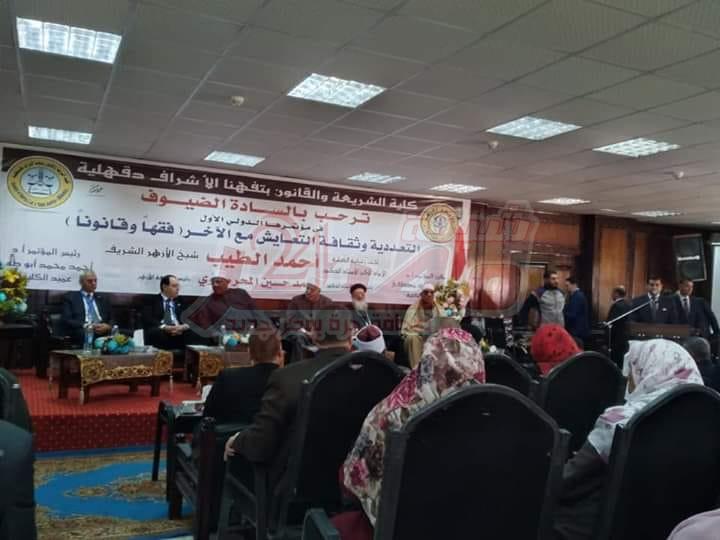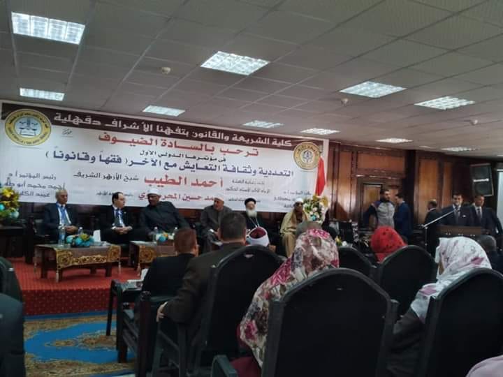 برعاية فضيلة الإمام الأكبر الدكتور أحمد الطيب، شيخ الأزهر، وفضيلة الدكتور محمد حسين المحرصاوي، رئيس الجامعة، انطلقت فعاليات الجلسة الافتتاحية للمؤتمر الدولي الأول بكلية الشريعة والقانون بتفهنا الأشراف تحت عنوان "التعددية وثقافة التعايش مع الآخر-فقهًا وقانونًا"، بحضور الدكتور محمد أبوزيد الأمير، نائب رئيس الجامعة للوجه البحري، والدكتور أحمد محمد أحمد، عميد كلية الشريعة بتفهنا الأشراف رئيس المؤتمر، والدكتور حمدي محمد مصطفى وكيل الكلية ومقرر المؤتمر، والدكتور عباس شومان، وكيل الأزهر السابق، والدكتور أحمد حسني، رئيس جامعة الأزهر الأسبق، والقمص أنسيموس رزق راعي كنيسة ماري جرجس بميت غمر، والقمص تموس راعي كنيسة ميت يعش، وعدد من قيادات وأساتذة جامعة الأزهر والجامعات المصرية والعربية.