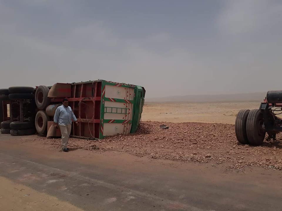 تلقت غرفة عمليات مجلس مدينة اسنا بلاغا يفيد بانقلاب مقطورة بالطريق الصحراوى الغربي مصر اسوان انتقل حجازى النحاس نائب رئيس مركز ومدينة اسنا الى موقع الحادث وبرفقته النقيب محمود سليم وحدة مرور الاقصر ، وذلك بناءا على تعليمات المهندس محمد سيد سليمان رئيس المركز وتوجيهات محمد بدر محافظ الاقصر. وأكد النحاس انه لايوجد أى خسائر أو إصابات فى الأرواح وجارى رفع المقطورة من الطريق السريع بلودر الوحدة المحلية .