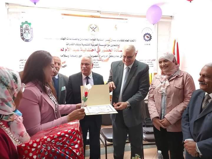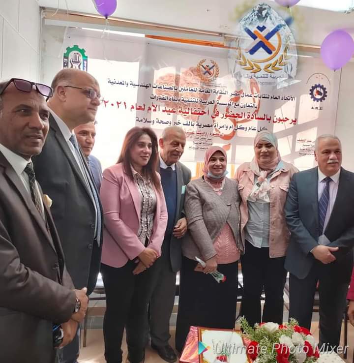 أقامه اليوم الاتحاد العام لنقابات عمال مصر النقابة العامة للعاملين بالصناعات الهندسية والمعدنية بالتعاون مع المؤسسة العربية للتنمية و بناء القدرات إحتفالية تكريم الأم المثالية لعام 2021 وبحضور مديرية القوى العاملة بالإسكندرية وهيئة التأمين الصحي بالإسكندريةوممثلين النقابات العمالية والمجتمع المدني والهيئة العامة للإستعلامات