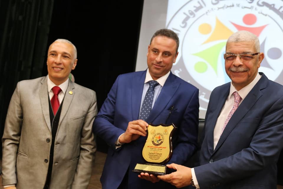 وإهداء درع المنتدى للدكتور صباح العلاوى رئيس جامعة سمراء بالعراق، والذى ألقى كلمة بسم الوفود العربية المشاركة فى المنتدى وجه فيها الشكر لكل من ساهم فى تنظيم فعاليات المنتدى.