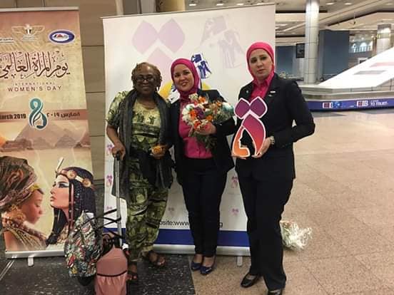 في اطار التعاون القائم بين المجلس القومى للمرأة ممثلا في لجنة العلاقات الخارجية بالمجلس برئاسة السفيرة منى عمر، وميناء القاهرة الجوي ممثلا في ادارة العلاقات العامة به، وبمناسبة الاحتفال باليوم العالمي للمرأة الموافق 8 مارس من كل عام ، استقبل مطار القاهرة الجوى صباح اليوم الوفود الاجنبية والعربية القادمين الى مصر بتوزيع الورود والشوكولاتة وشعار " التاء المربوطة... سر قوتك " على السيدات والفتيات ترحيباً بهن في مصر .