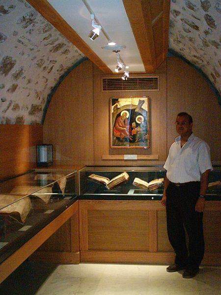 ويوضح د. ريحان أن المعرض يضم عدة نسخ من صورة العهدة النبوية المعتمدة وهو العهد الذى يؤمّن فيه رسول الله صلى الله عليه وسلم المسيحيين على أموالهم وأنفسهم ومقدساتهم وممتلكاتهم كما يحوى أشهر مخطوطات الدير والتحف الفنية المختلفة المهداة للدير عبر العصور من تحف معدنية وخشبية رائعة ويقع المتحف فى أجمل موقع بالدير مواجهاً كنيسة التجلى الكنيسة الرئيسية بالدير وشجرة العليقة الملتهبة الذى ناجى عندها نبى الله موسى ربه وتعانق برج كنيسة التجلى مع مئذنة الجامع الفاطمى داخل الدير لتتعانق الأديان فى بقعة واحدة لا مثيل لها فى العالم