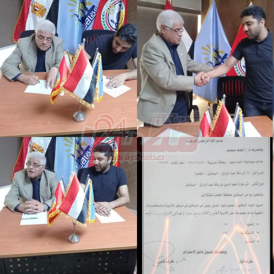 لتوقيع بروتوكول تعاون بين صيدليات د احمد سعيد وحي البساتين يقضي بتوفير الادوية والمستحضرات الطبية لاهالي حي البساتين غير القادرين بنسبة ١٥ % على الادوية محلية الصنع و١٢ ٪ على الادوية الاستثمارية و٥٪ على الادوية المستوردة ويوجد للصيدلية فرعان