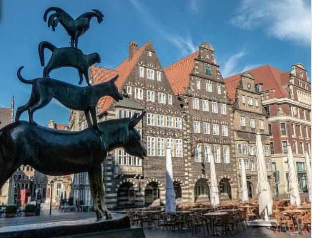 يعد تمثال "عازفو بريمن" رمز مدينة بريمن الألمانية وهو عبارة عن تماثيل مركبة تعود إلى القصة الخرافية للأخوين جريم وهي عبارة عن قصة تنتقد الأوضاع الاجتماعية في ذلك الوقت: فالتمثال المكون من الديك والقط والكلب والحمار يرمز لمرحلة العبودية في القرن الـ 19 بحسب المركز الاعلامي الألماني.