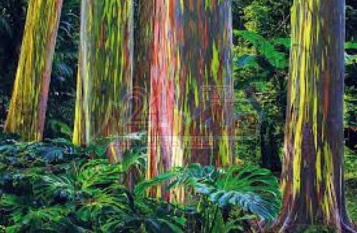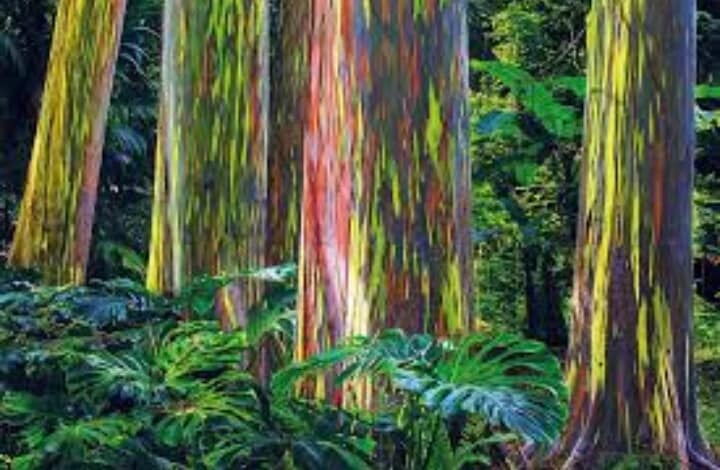 شجرة قوس القزح سميت بهذا الإسم تعبيراً عن كثرة ألوانها ألمموجة من الساق إلي الفروع وتعرف علمياً بأنها شجرة اليوكاليبتوس