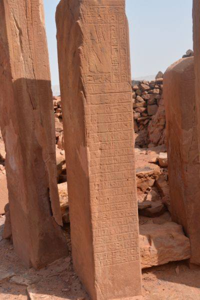 ويؤكد الدكتور ريحان أن الإنسان على أرض الفيروز فى عصر مصر القديمة اكتشف الفيروز واستخرجه من سرابيط الخادم ووادى المغارة بجنوب سيناء واستخرجوا النحاس من وادى النصب وقد أطلق على سيناء أرض الفيروز نتيجة ذلك وسرابيط الخادم جبل صغير مستطيل الشكل قرب ميناء أبو زنيمة والسبب فى التسمية يرجع إلى لفظ سربوط المعروف عند أهل سيناء بالصخرة الكبيرة القائمة بنفسها وجمعها سرابيط ،وجميع ما فى المعبد من أنصاب مأخوذة من هذا الجبل ، وأعمدة هيكل المعبد تشبه الخدم ذو البشرة السوداء ،لهذا سمى معبد سرابيط الخادم ، وبه هيكل للمعبود سوبد وهيكل للمعبودة حتحور