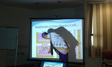 -- وفى نهاية الندوة والمحاضرة تفاعل الحاضرين من خلال المناقشة مع المحاضر على توضيح كافة النقاط المختلف عليها وتغطية لأهم التقنيات المعملية المستخدمة فى العلاج المناعي للسرطان وأهمية تخصص الطب المعملي فى علاج الكثير من الأمراض المستعصية.