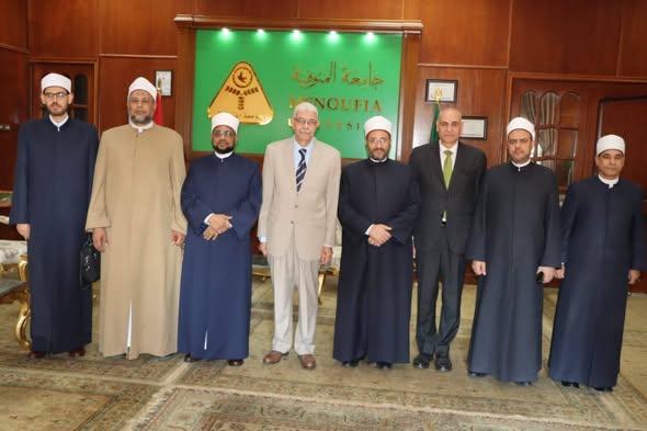 استقبل الدكتور أحمد القاصد رئيس جامعة المنوفية فضيلة الدكتور محمد الجندي الأمين العام للدعوة بمجمع البحوث الاسلامية والدكتور محمود الهواري الأمين العام المساعد للدعوة والإعلام بمجمع البحوث الاسلامية وفضيلة الدكتور حسن يحيي أمين اللجنة العليا للدعوة بمجمع البحوث الاسلامية وفضيلة الدكتور حسن درويش رئيس الادارة المركزية لمنطقة المنوفية الازهرية لانطلاق فاعليات الاسبوع الثالث عشر تحت عنوان " الايمان في عصر العلم " وذلك في إطار المبادرة الرئاسية "بداية جديدة لبناء الانسان المصري" تحت إشراف الدكتور صبحي شرف نائب رئيس الجامعة لشئون خدمة المجتمع وتنمية البيئة وبحضور الدكتور ناصر عبد الباري نائب رئيس الجامعة لشئون التعليم والطلاب والدكتورة غادة حسن نائب رئيس الجامعة لشئون الدراسات العليا والبحوث وقيادات الازهر الشريف.