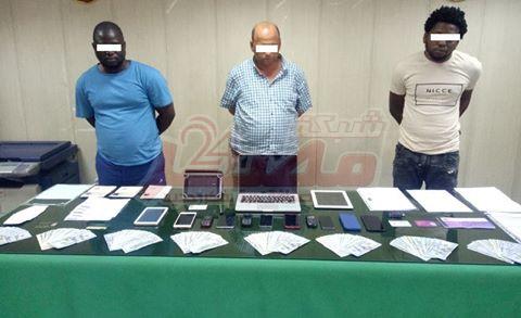 عقب تقنين الإجراءات تم ضبط المتهمين المذكورين وعثر بحوزة الثالث على هاتف محمول ، وبحوزة الأول على مايلى :-