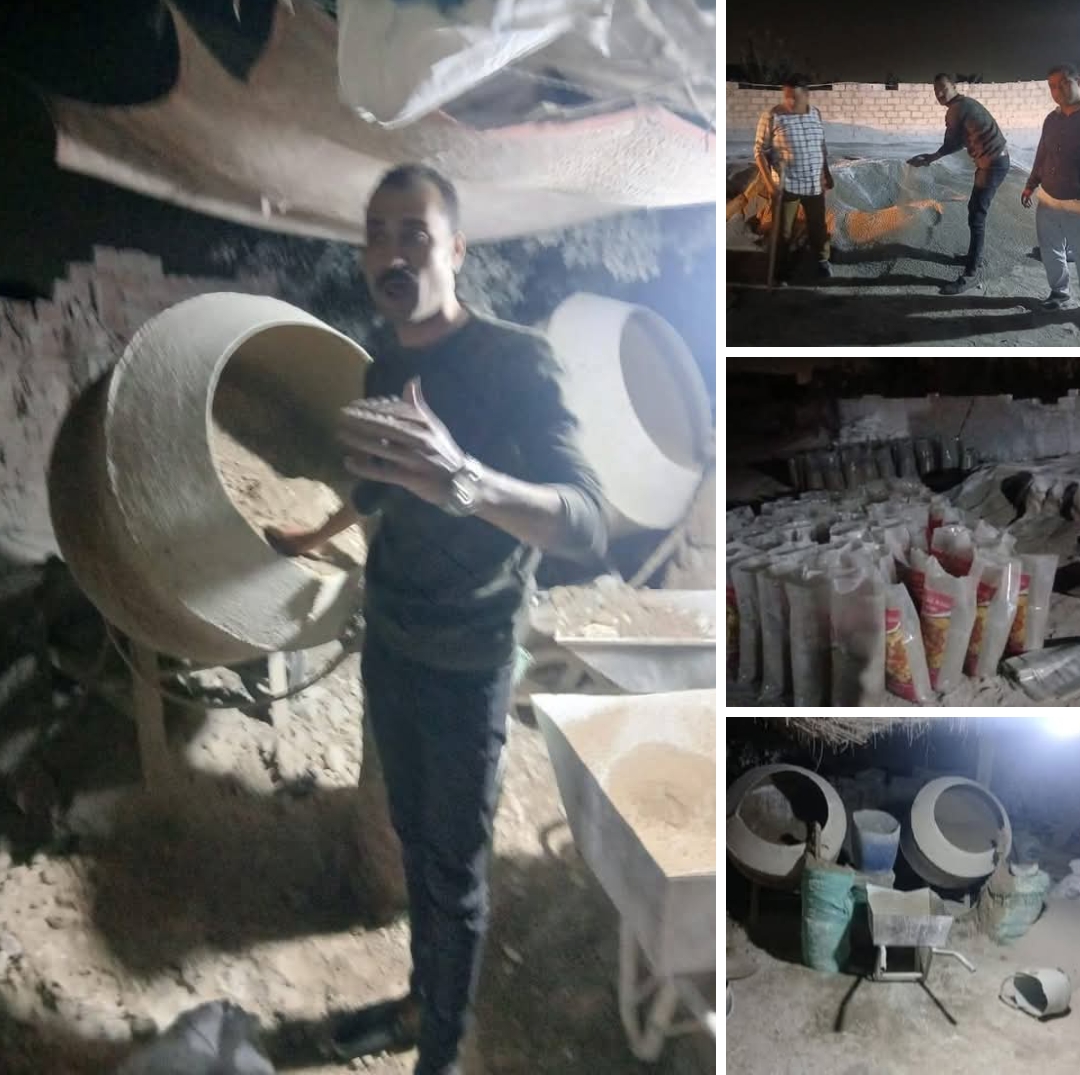 ضبط منشأة غير مرخصة لغش وتقليد السماد الزراعي بمركز الصف والتحفظ على 95 طنًا من المضبوطات