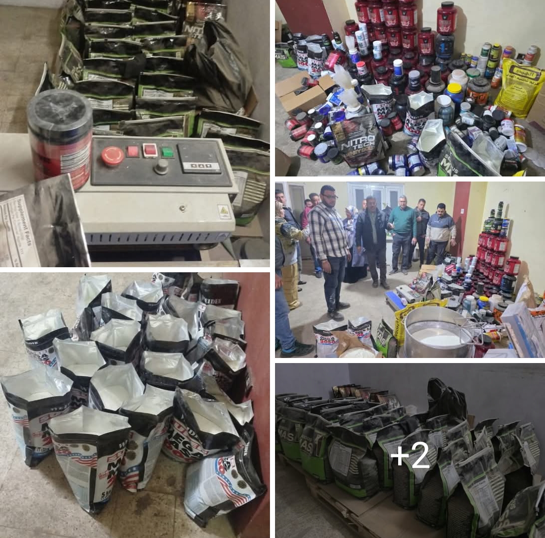 وأوضح المحافظ أن الحملات التفتيشية التي نفذها حي الطالبية ومديرية التموين على المنشآت المخالفة أسفرت عن غلق وتشميع منشأة لتعبئة المكملات الغذائية الخاصة بكمال الأجسام والرياضيين، والتي كانت تعمل بدون ترخيص أو تصريح من الجهات المختصة، وبدون إشراف صحي كما كانت تقوم بتقليد علامات تجارية عالمية باستخدام مكونات منتهية الصلاحية ومجهولة المصدر، بما يشكل خطرًا على الصحة العامة.