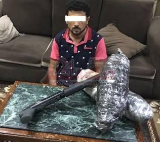 ضبط ( بندقية خرطوش ، طبنجة ، 2 فرد محلى الصنع، 15 طلقة نارية مختلفة الأعيرة ) .