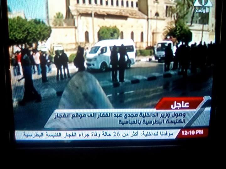 وصول وزير الداخلية اللواء مجدي عبد الغفار إلى موقع التفجير الإرهابي الذي وقع صباح اليوم في الكنيسة البطرسية بالعباسية