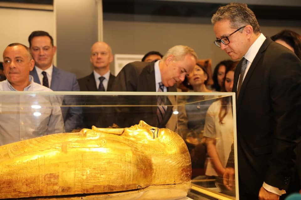 و اليوم يشهد الدكتور خالد العناني وزير الآثار عرض التابوت لأول مرة في مصر فور عودته الى أرض الوطن، بحضور القائم بأعمال السفير الأمريكي وماس جولد برجر، والدكتور مصطفى وزيري الأمين العام للمجلس الأعلى للآثار ، وشعبان عبد الجواد المشرف العام على ادارة الآثار المستردة، والدكتور احمد الشربيني المشرف العام على المتحف القومي للحضارة المصرية، و حوالي 15 سفيرا من سفراء العالم بالقاهرة منها كوبا و أيرلندا و ليتوانيا و أيرلندا و صربيا و الكونغو و مالطة غيرهم.