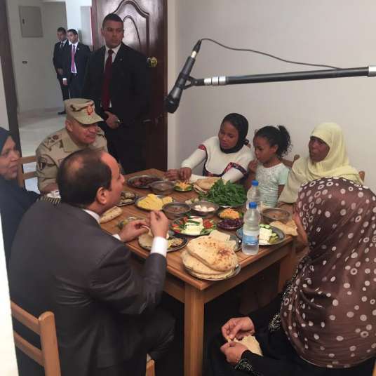 تناول الرئيس عبد الفتاح السيسي الإفطار مع أحدى الأسر البسيطة بغيط العنب، وسط حوار ودى جمع الرئيس بالأسرة فى حضور الفريق أول صدقى صبحى وزير الدفاع