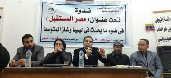 أقامت مساء أمس ، أمانة الشباب المركزية للحزب العربي الديمقراطي الناصري ، ندوة تثقيفية تحت عنوان " مصر وتحديات المستقبل " في ضوء ما يحدث في ليبيا وغاز المتوسط ، وذلك بمقر الحزب الرئيسي ب8 طلعت حرب ، برعاية وحضور المستشار سيد عبد الغني رئيس الحزب .