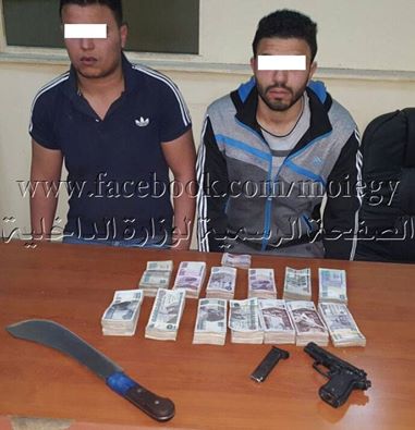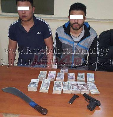 حال قيامهما بتهديد المدعو "محمود .م" سن 33 ، مندوب تحصيل إحدى الشركات بدائرة القسم .. بقصد الإستيلاء على مبلغ مالى منه قدره ( 56,654 جنيه - عهدته ملك الشركة " كرهاً عنه تحت تهديد السلاح المضبوط بحوزة الأول .