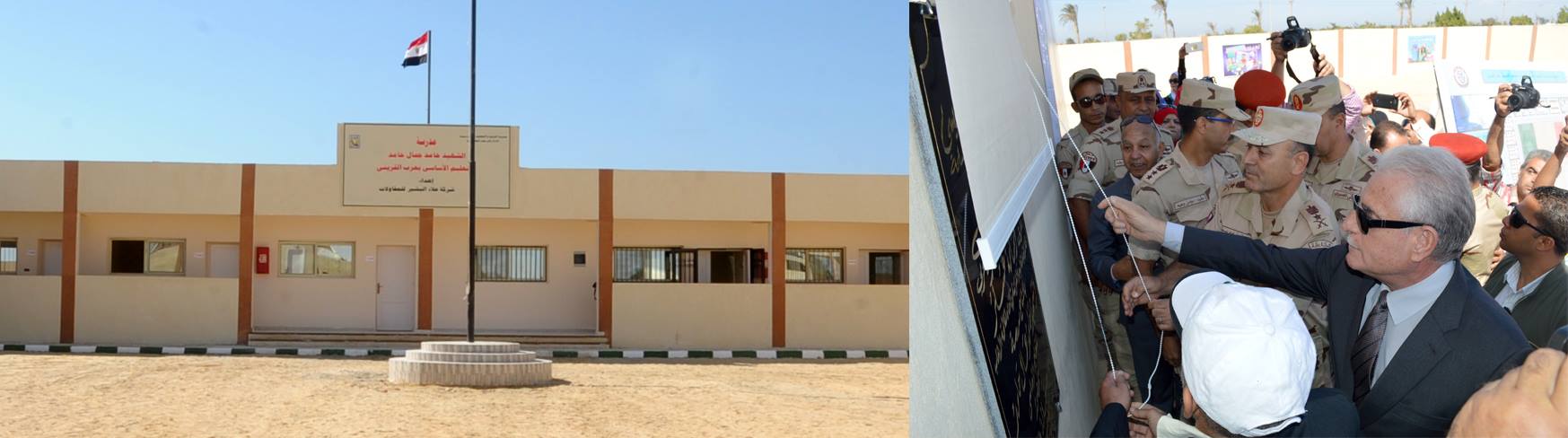 إمتداداً للجهود المبذولة لدعم مقومات التنمية الشاملة بسيناء ، وتوفير الحياة الكريمة للمواطنين من أبناء المحافظتين ، إفتتح الفريق / أسامة عسكر قائد القيادة الموحدة لقوات شرق القناة للتنمية ومكافحة الإرهاب ، يرافقه اللواء / خالد فودة محافظ جنوب سيناء ، مدرستين للتعليم الأساسى ومعهد أزهرى للمرحلة الإعدادية والثانوية ، لخدمة أبناء محافظة جنوب سيناء ، والتى حملت أسماء عدد من شهداء القوات المسلحة بسيناء ، تكريماً لهم وتخليداً لأسمائهم لما قدموه من تضحيات فى سبيل الوطن .
