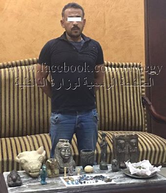 تمكنت مباحث قسم أول أسيوط من ضبط "مصطفى م.ع" سن 33 - عاطل - ومقيم بدائرة قسم شرطة أول أسيوط) وبحوزته ( 8 تماثيل كبيرة الحجم، وكذا مجموعة من التماثيل الصغيرة يشتبه فى آثريتها) .