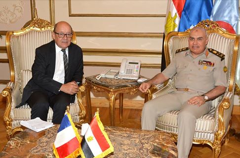 إستقبل الفريق أول / صدقى صبحى القائد العام للقوات المسلحة وزير الدفاع والإنتاج الحربى السيد / جان إيف لودريان وزير الدفاع الفرنسى والوفد المرافق له الذى يزور مصر حالياً .