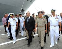 وتفقد الوزيران حاملة المروحيات " جمال عبد الناصر " من طراز ميسترال والتى تعد من أحدث القطع داخل صفوف القوات البحرية المصرية ، وأثنى الوزيران على مستوى الكفاءة والإحترافية للأطقم التخصصية والفنية التى تعمل على متن الحاملة ، وتنفيذ برامج التدريب المكثفة لإستيعاب أحدث ما وصل إليه العالم فى التكنولوجيا فى مختلف أنظمة التسليح والإتصالات وتنفيذ كافة المهام الموكلة إليهم بكفاءة عالية .