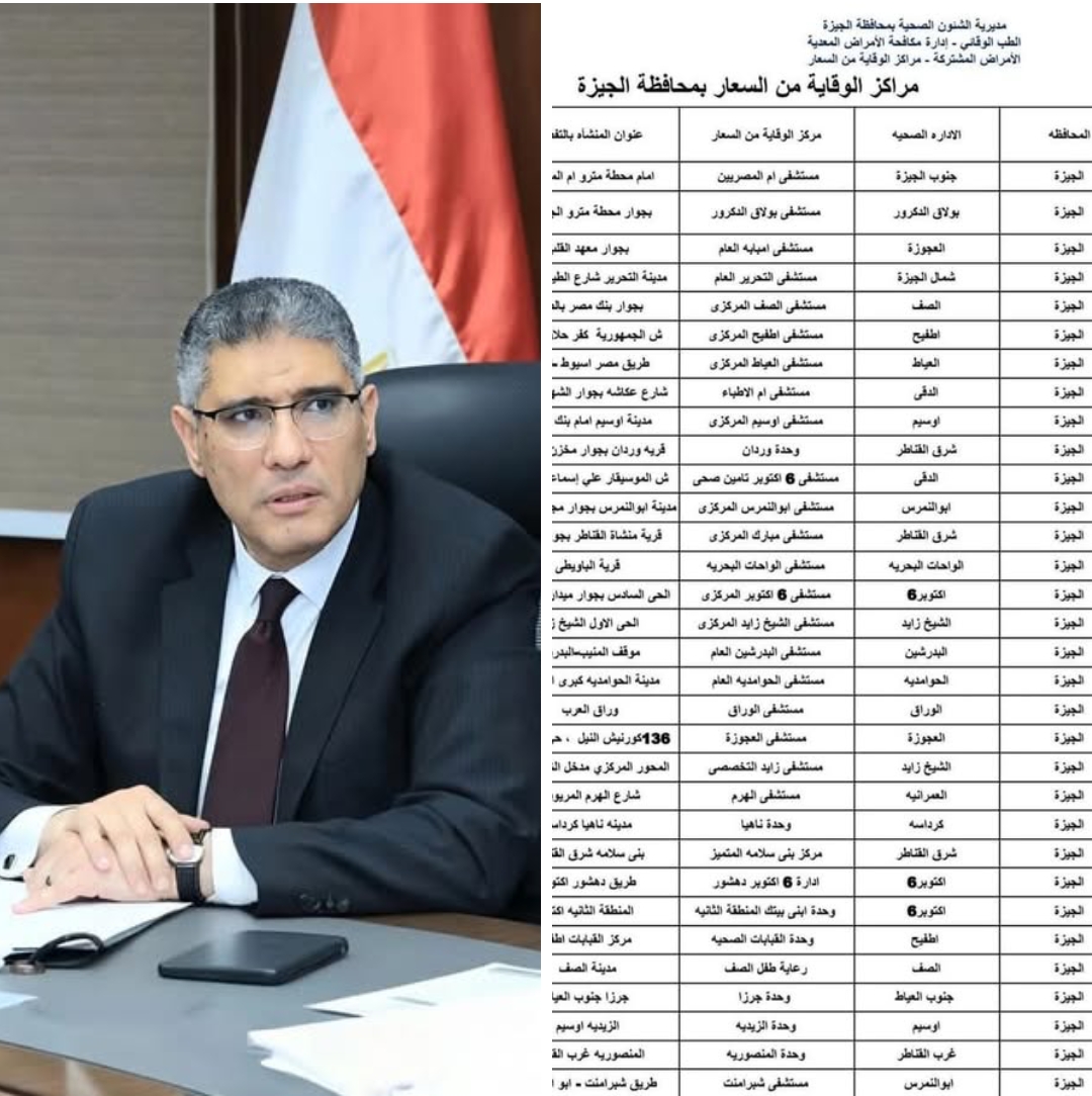 وتشمل المراكز والمستشفيات إجمالي 32 موقعًا موزعة على جميع أنحاء محافظة الجيزة، لضمان التغطية الشاملة لكل الإدارات الصحية وسرعة الوصول للخدمة الطبية. وتشمل هذه المراكز: