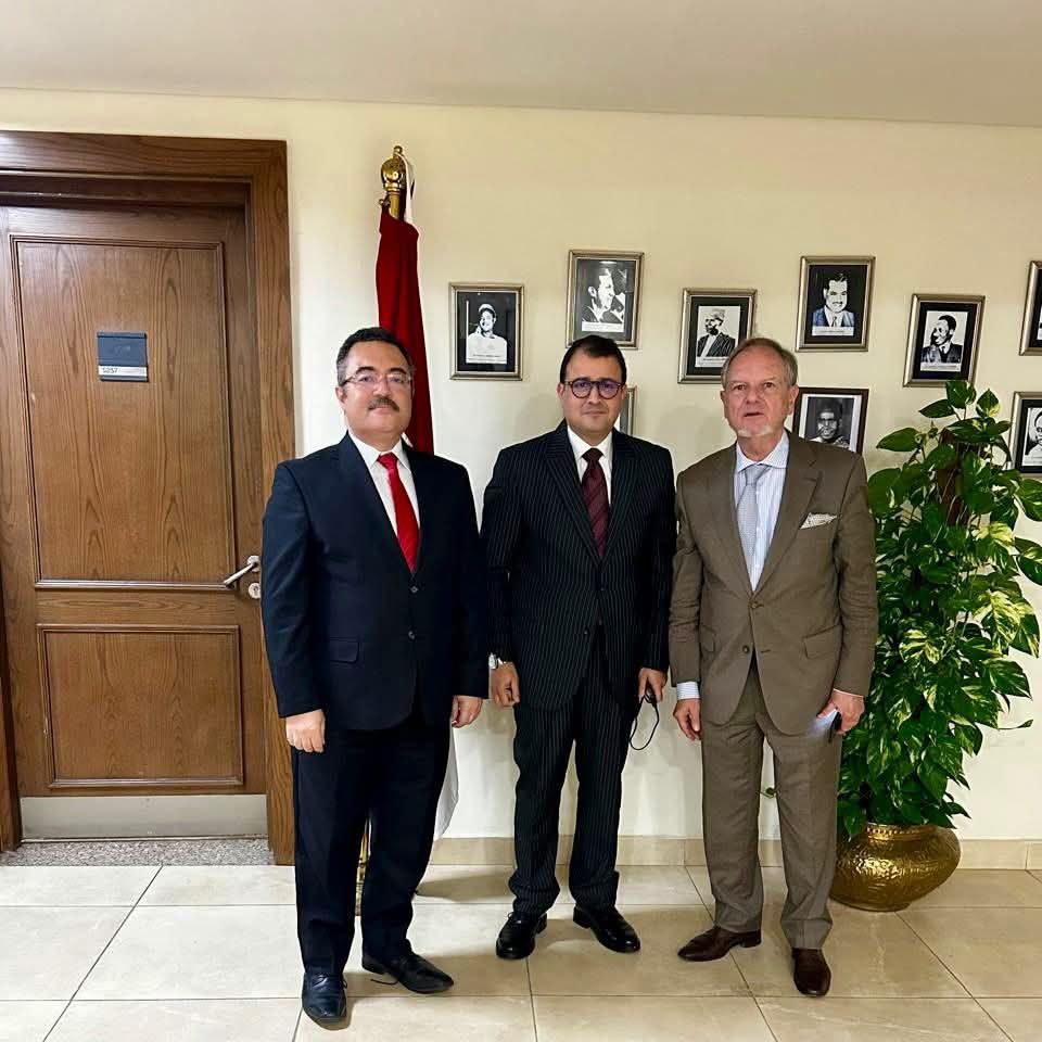 استضاف السفير محمد كريم شريف مساعد وزير الخارجية المعين للشؤون الأفريقية المبعوث الفرنسى للسودان والقرن الافريقى السفير بيرتراند كوشيرى، حيث عقد الجانبان جولة مشاورات تناولت جوانب العلاقات بين البلدين اتصالا بالقارة الأفريقية عموماً والقرن الافريقى خصوصاً، فضلاً عن تنسيق المواقف بشأن القضايا المتصلة بأمن البحر الأحمر وتقاطعاته مع الأوضاع فى الصومال واريتريا والسودان باعتبارها دول عربية وافريقية مطلة على البحر الأحمر وخليج عدن وامتداداته إلى دول القرن الافريقى الأوسع، فضلا عن قضايا أمن المياه والطاقة وتعزيز التحول الأخضر والتعاون الاقتصادى ومقاربة هذه الموضوعات مع تحقيق الأمن والاستقرار.