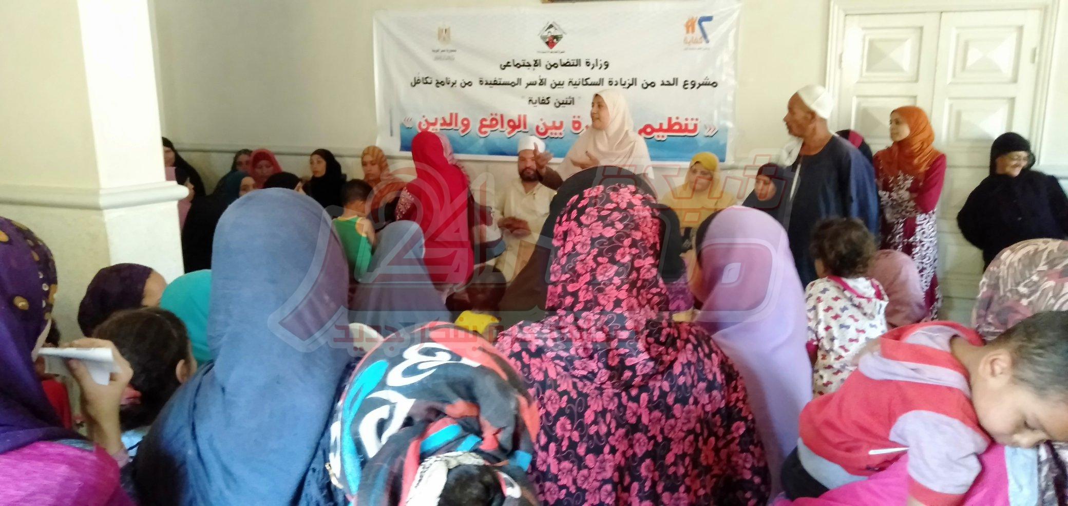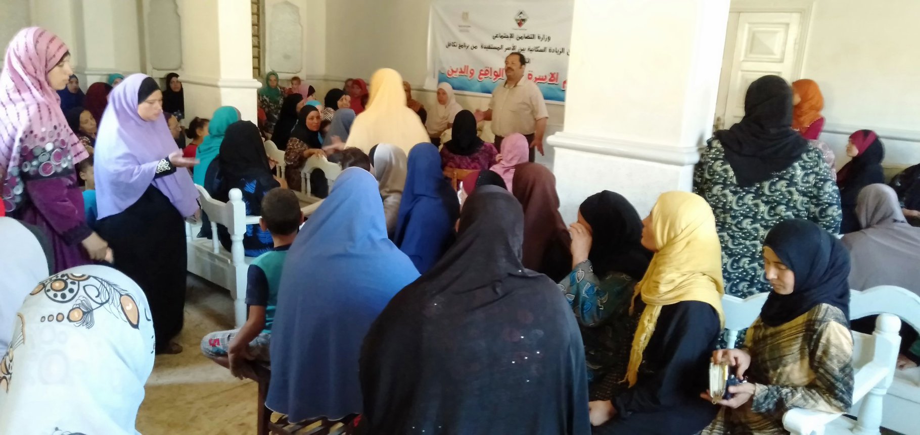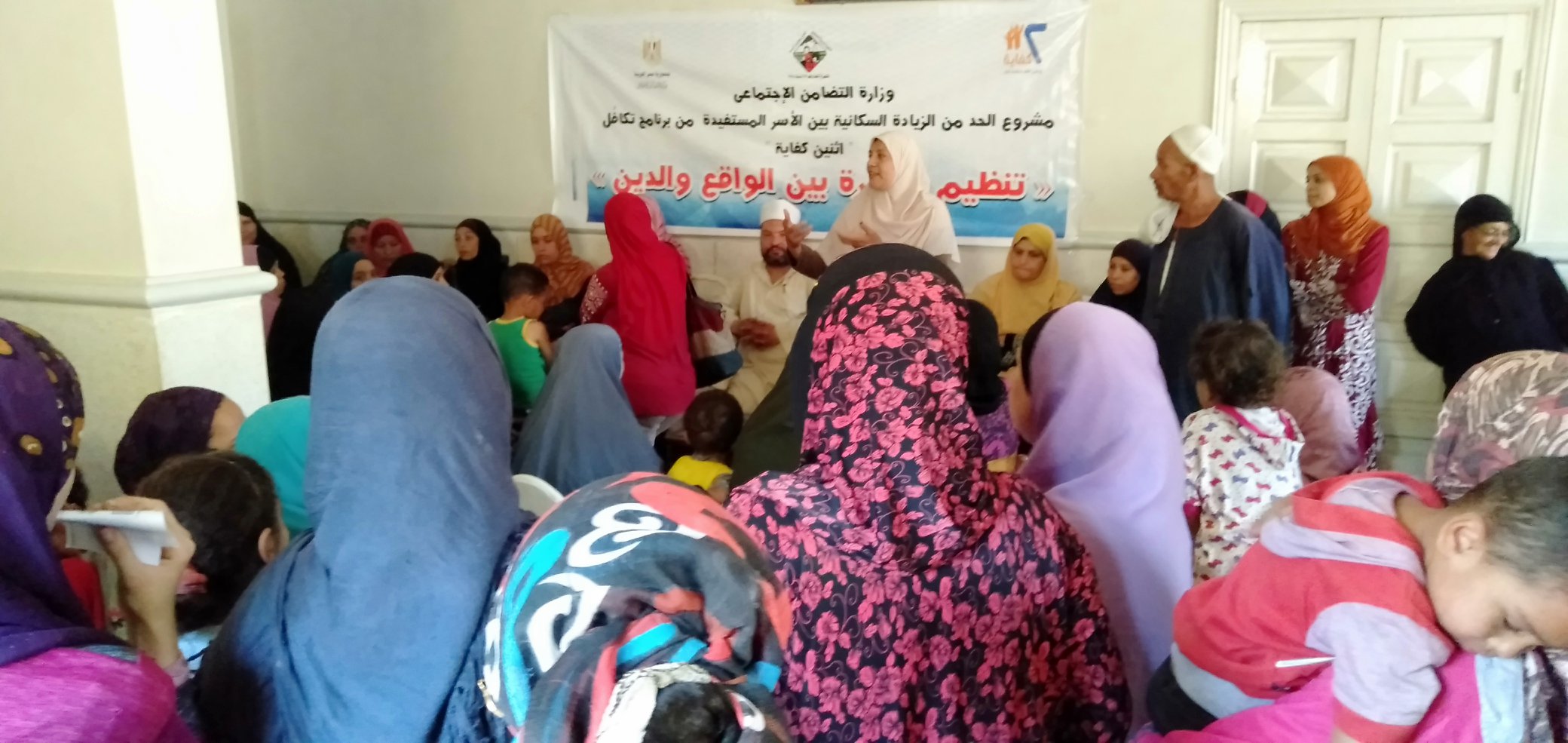 فى إطار مشروع الحد من الزيادة السكانيه بين الاسر المستفيدة من تكافل (( اثنين كفايه )) الممول من وزارة التضامن الاجتماعى ، نظمت جمعيه تنميه المجتمع المحلى بجزيرة ببا لقاء جماهيرى بقريه هربشنت - مركز ببا - جنوب بنى سويف