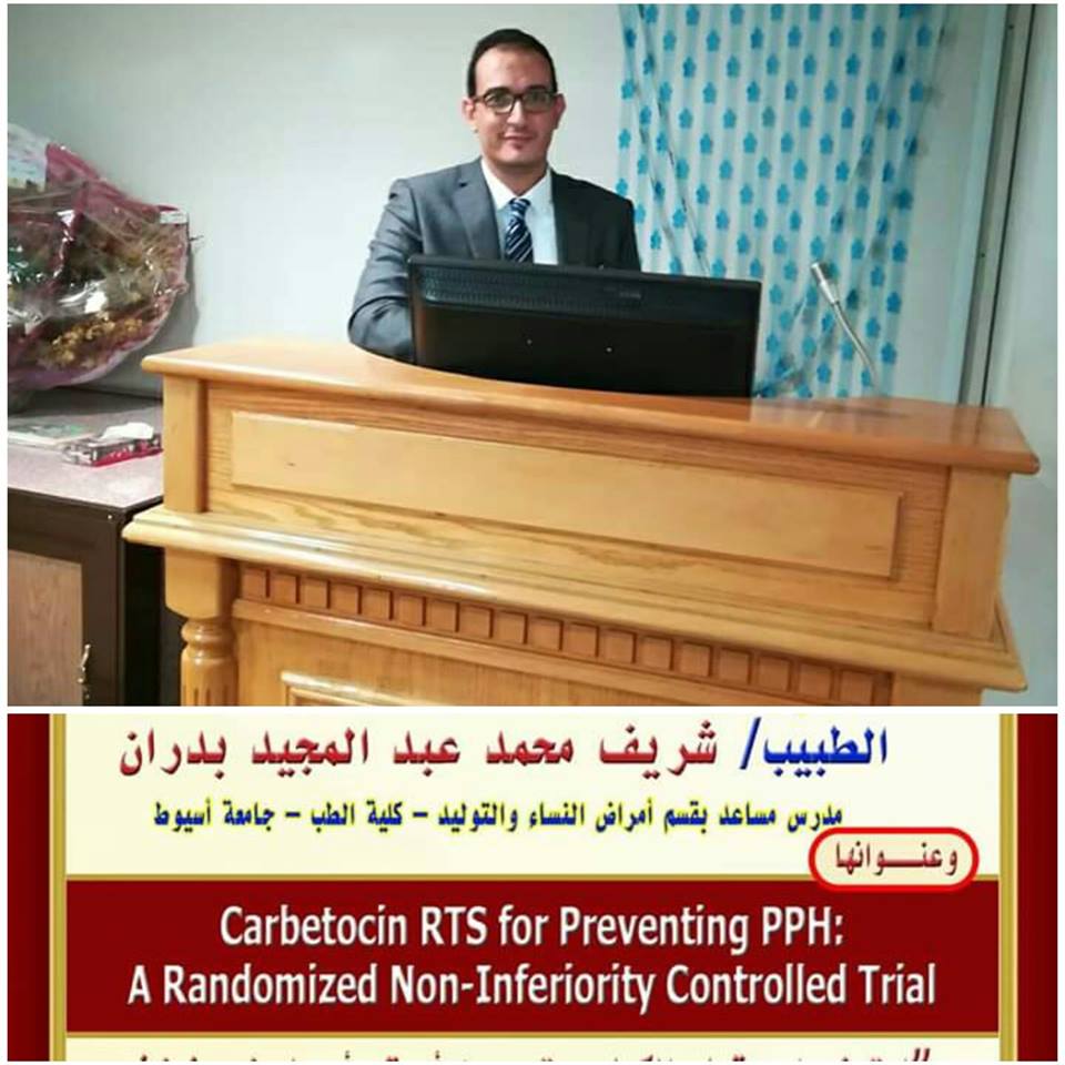 في جو عائلي بهيج وبحضور لفيف من الاهل والأصدقاء وبعض اعضاء هيئة التدريس بكلية الطب بجامعة أسيوط ،تم وبتاريخ اليوم مناقشة رسالة الدكتوراه المقدمة من الطبيب شريف محمد عبدالمجيد -المدرس المساعد بقسم امراض النساء والتوليد بكلية الطب بجامعة أسيوط.