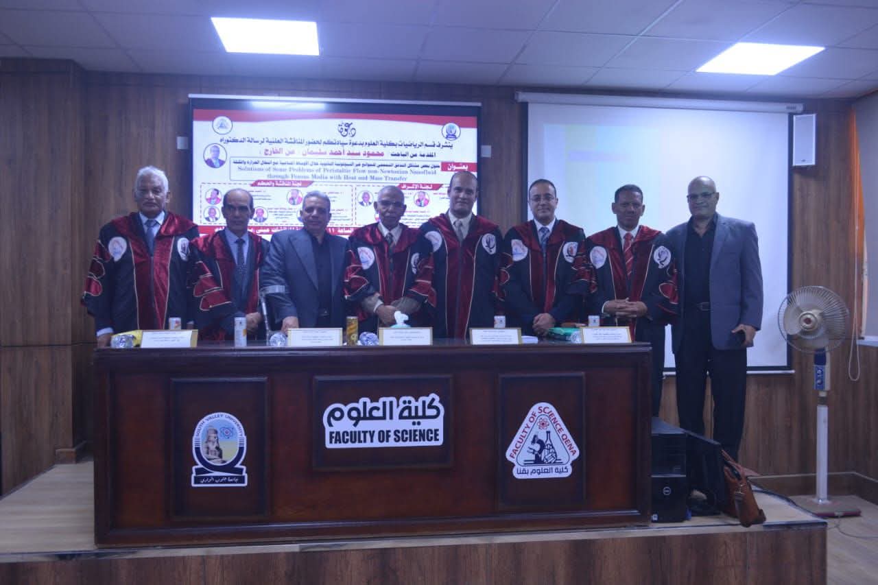 نوقشت بكلية العلوم بجامعة جنوب الوادي بقنا رسالة الدكتوراه المقدمة من الباحث محمود سيد أحمد سليمان، وكان عنوانها: "حلول بعض مشاكل التدفق التمعجي للموائع غير النيوتونية النانوية خلال الأوساط المسامية مع انتقال الحرارة والكتلة".