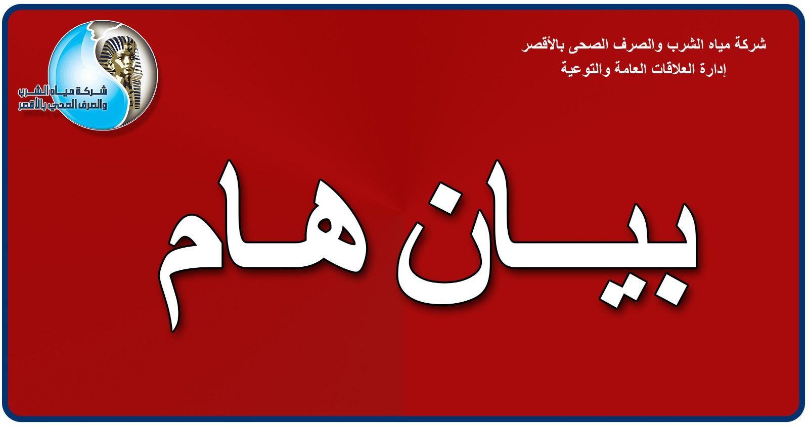 أعلنت شركة مياه الشرب والصرف الصحى بالأقصر عن ضعف المياه بمناطق ( الزناقطة - مستشفى الحميات - قوات أمن الحبيل - السجن العمومى بالحبيل )